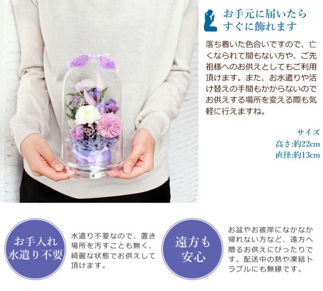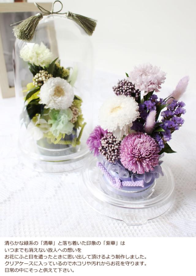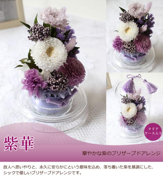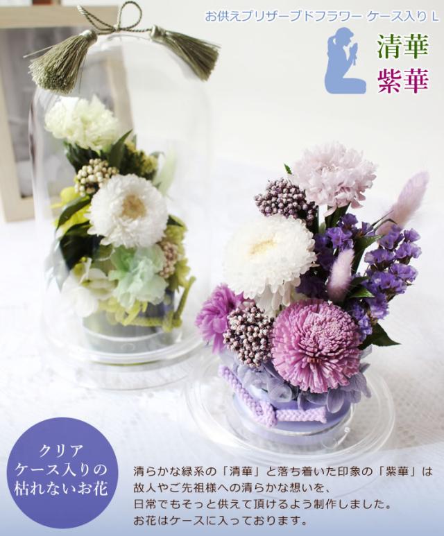 お供え花 プリザーブドフラワー 清華 紫華 ケース入りL 送料無料 御供 お供え お悔やみ 花 アレンジメント 仏花 お彼岸 お盆 初盆 新盆 命日 喪中お見舞い 法事 法要 葬儀 お葬式 お通夜 命日
