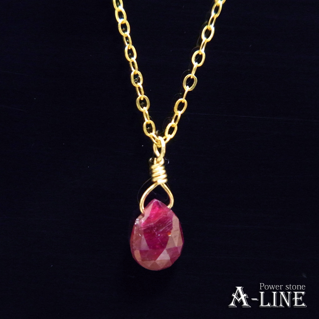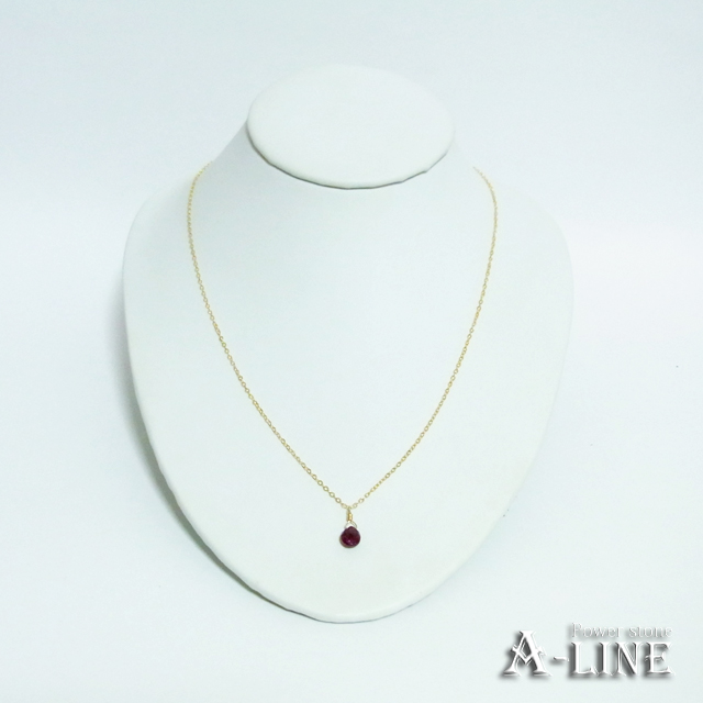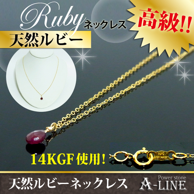 ネックレス 天然ルビー 14KGF平あずきチェーン45cm ポーチ付き 7月の誕生石 PW-2989