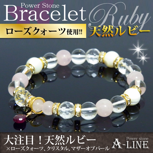 パワーストーン ブレスレット 7月の誕生石ブレストップに 天然ルビー マザーオブパール使用 PW-2997