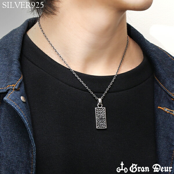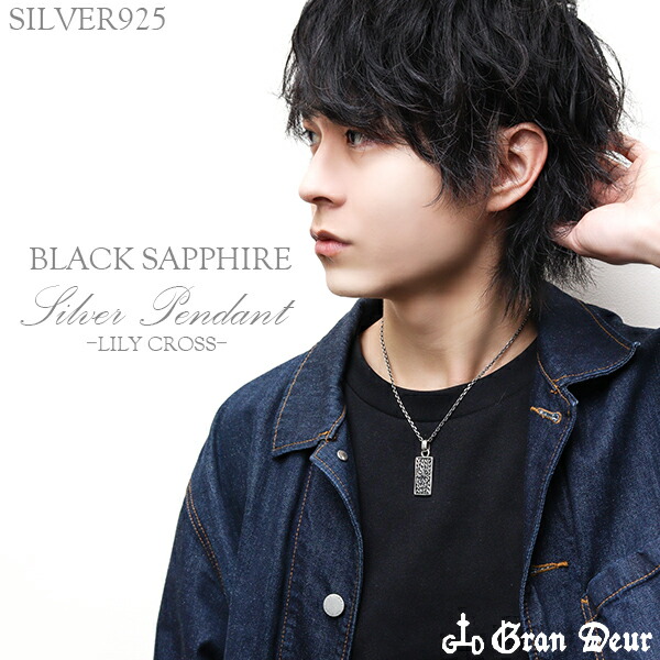 GRAN DEUR ユリ クロス ブラックサファイア シルバーペンダントトップ チェーンなし ペンダントトップ シルバーアクセサリー メンズ 男性用 リリィ