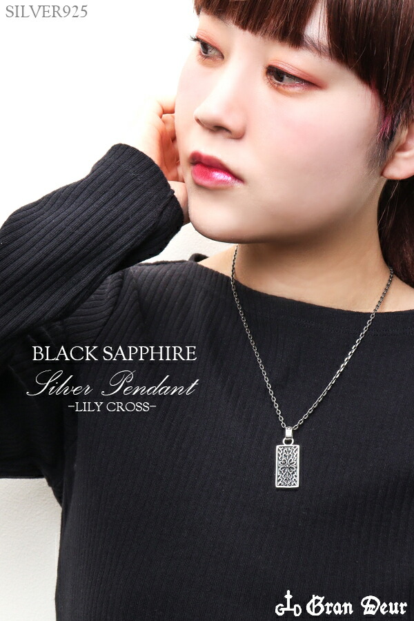 【送料無料】【GRAN DEUR】ユリ クロス ブラックサファイア シルバーペンダントトップ(チェーンなし)