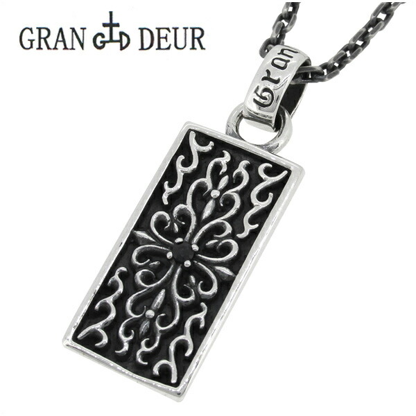 【GRAN DEUR】ユリ クロス ブラックサファイア シルバーネックレス/シルバー925/メンズ ネックレス ブランド