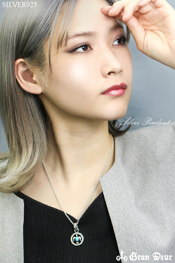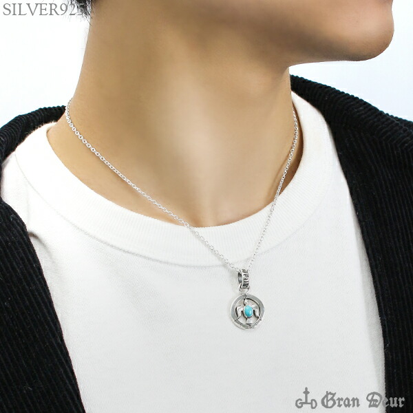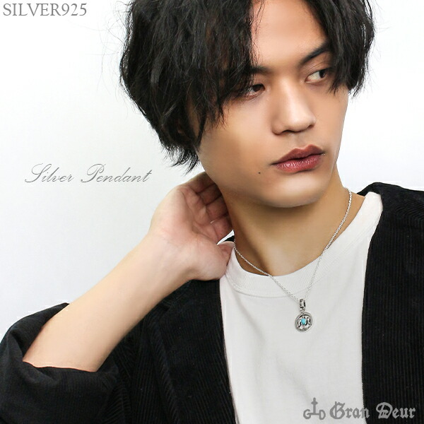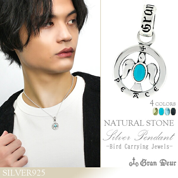 GRAN DEUR ラウンドフレーム 宝石を運ぶ鳥 鳩 シルバーペンダントトップ チェーンなし シルバー925 メンズ ネックレス 男性 ピースマーク 天然石 鳥