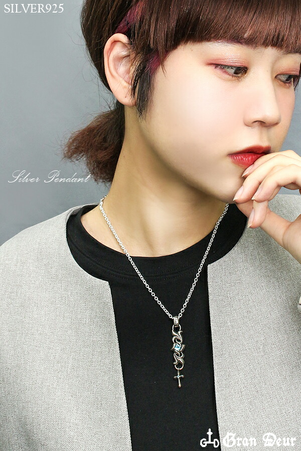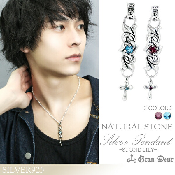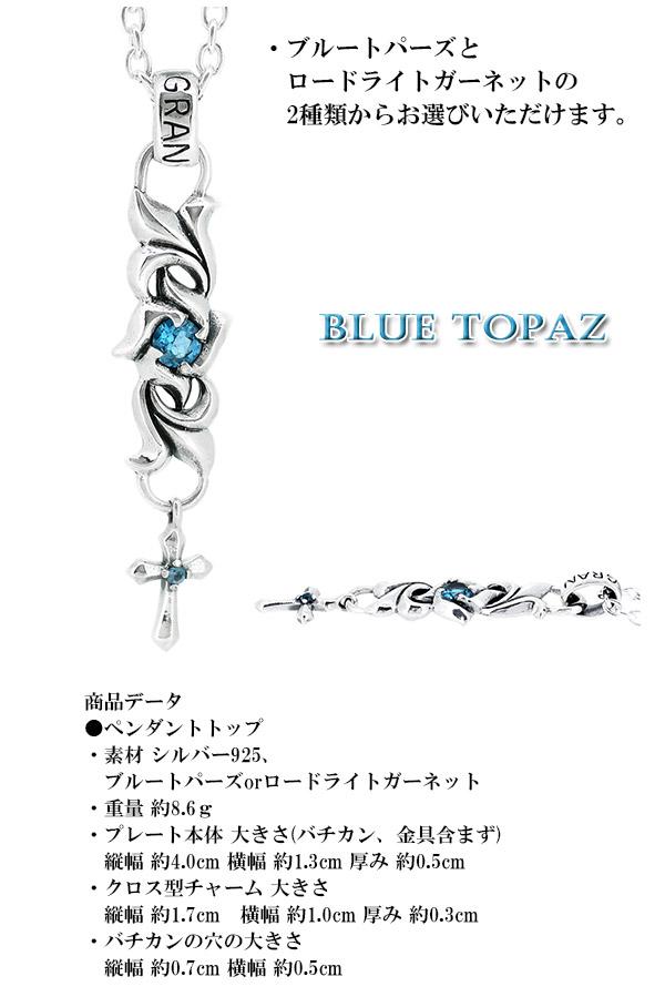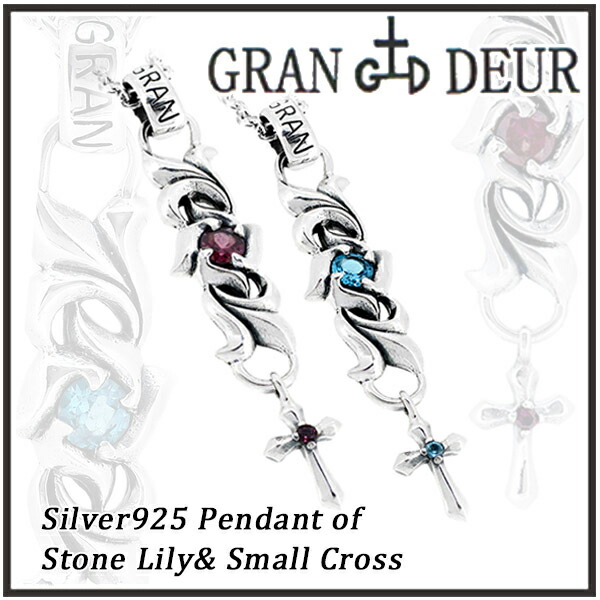 GRAN DEUR ストーンリリィ スモールクロス シルバーペンダントトップ チェーンなし シルバー925 メンズ ネックレス ブルートパーズ