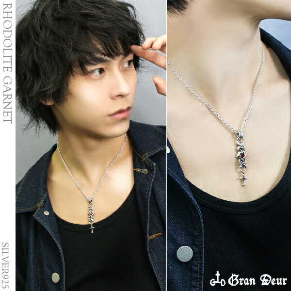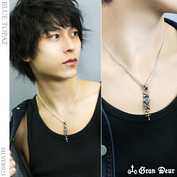 シルバー925 メンズ ネックレス ブルートパーズ ロードライトガーネット 天然石 シルバー925 ユリ 百合 クロス【ギフトOK】 メンズネックレス 男性用ネックレス