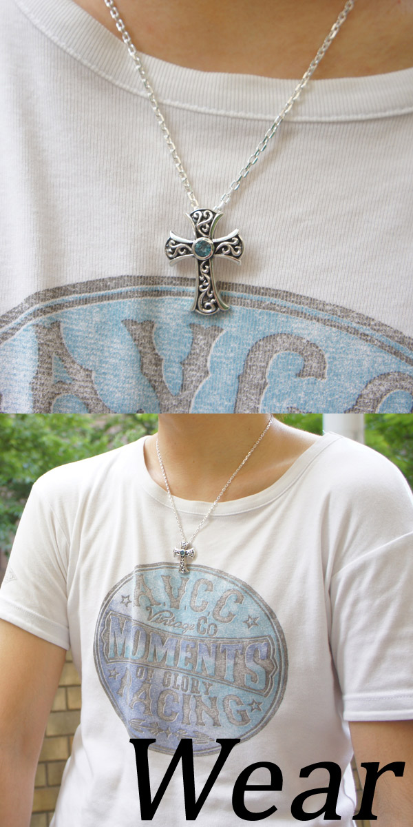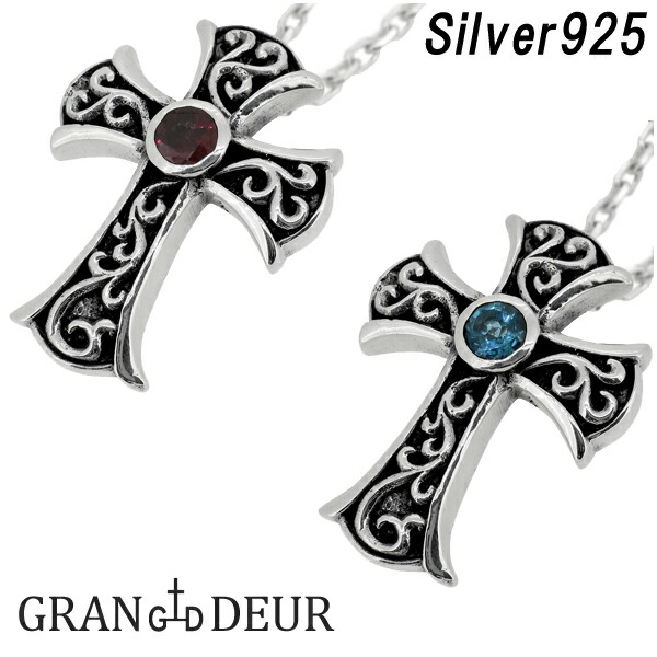 【送料無料】【GRAN DEUR】クロス ブルートパーズ 唐草 シルバー ネックレス