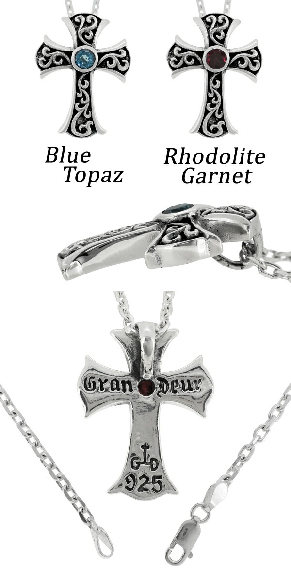 メンズ シルバー925 ネックレス クロス ブルートパーズ ロードライトガーネット【新宿 銀の蔵】