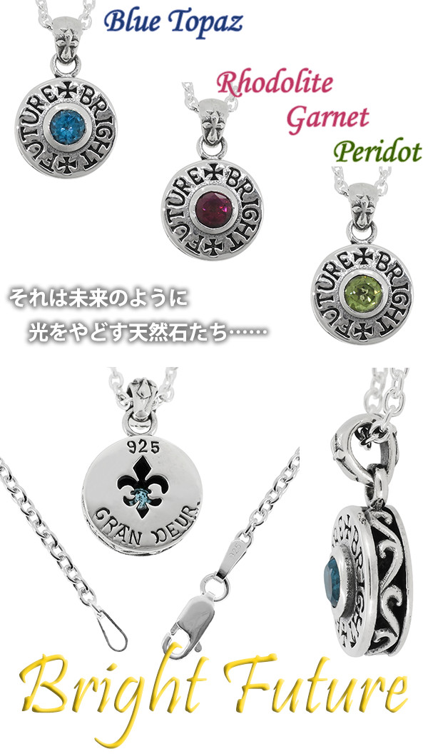 シルバー メンズ ネックレス シルバー925 天然石 ブルートパーズ ロードライトガーネット ペリドット ユリ
