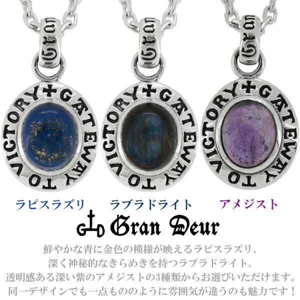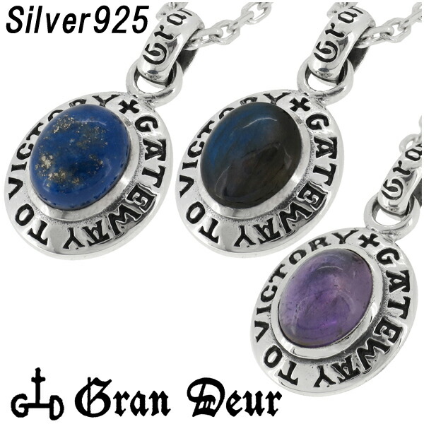 【GRAN DEUR】 ラピスラズリ ラブラドライト オーバル シルバーペンダント (チェーンなし)シルバー925/メンズ ネックレス ブランド