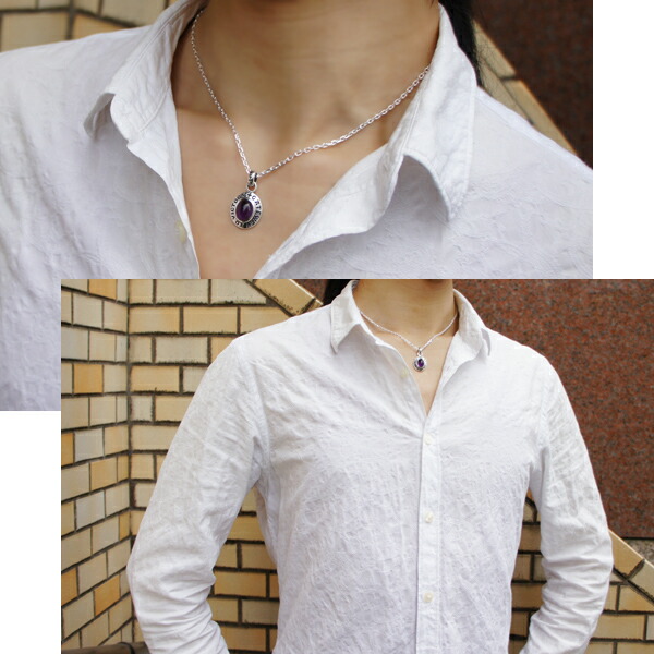 メンズ シルバー925 ネックレス 天然石 楕円【新宿 銀の蔵】
