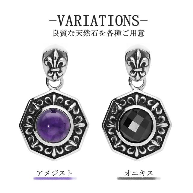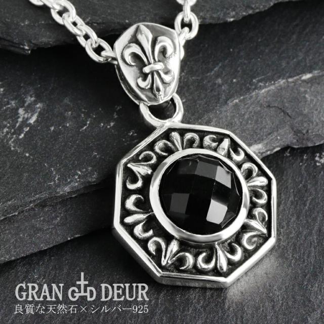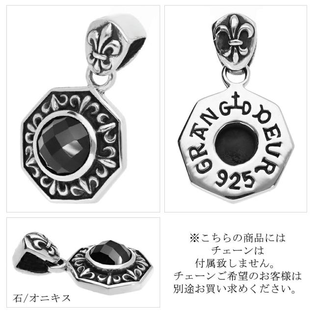 GRAN DEUR 選べる 天然石 リリー オクタゴン フレーム シルバー ペンダントトップ ペンダント オニキス アメジスト 八角形 リリィ 百合 ユリ