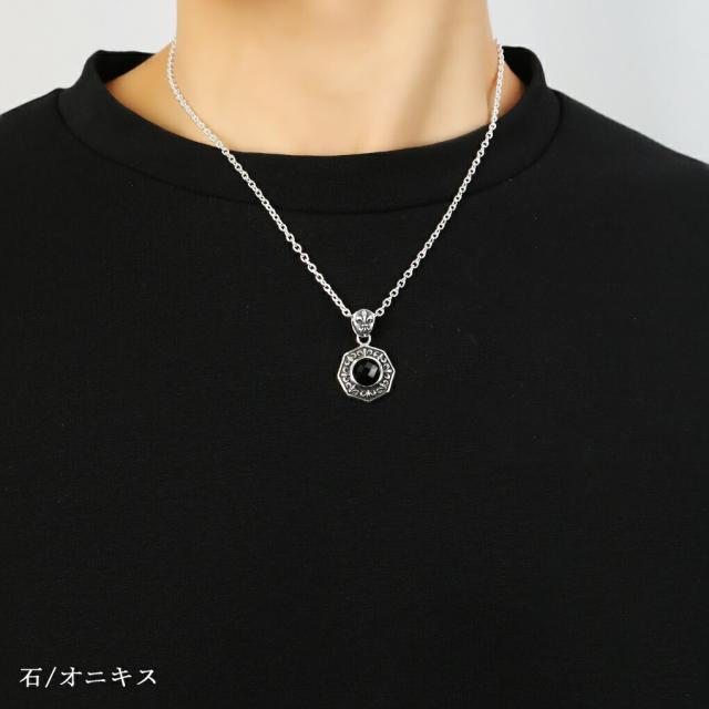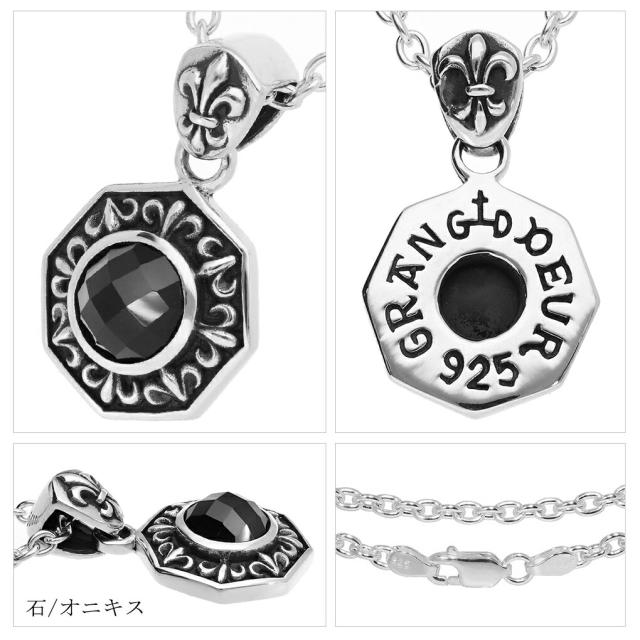 GRAN DEUR 選べる 天然石 リリー オクタゴン フレーム シルバー ネックレス ペンダント ペンダントトップ オニキス アメジスト 八角形 リリィ 百合