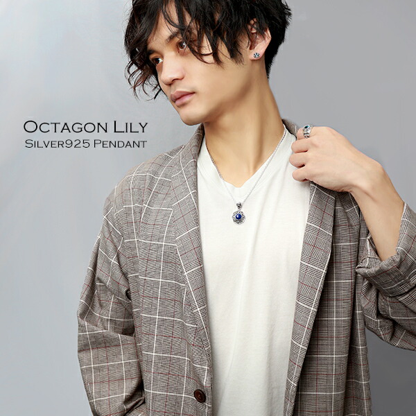 シルバー925 メンズ ペンダント 八角形 天然石 amethyst 紫水晶 クォーツ quartz パープル ペンダント