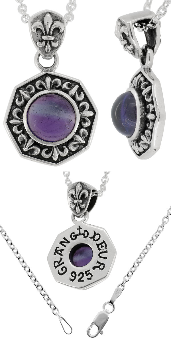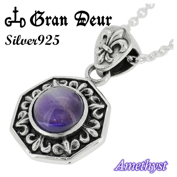 GRAN DEUR リリィ アメジスト シルバーペンダントトップ チェーンなし シルバー925 メンズ ペンダント 八角形 天然石 紫水晶 クォーツ quartz