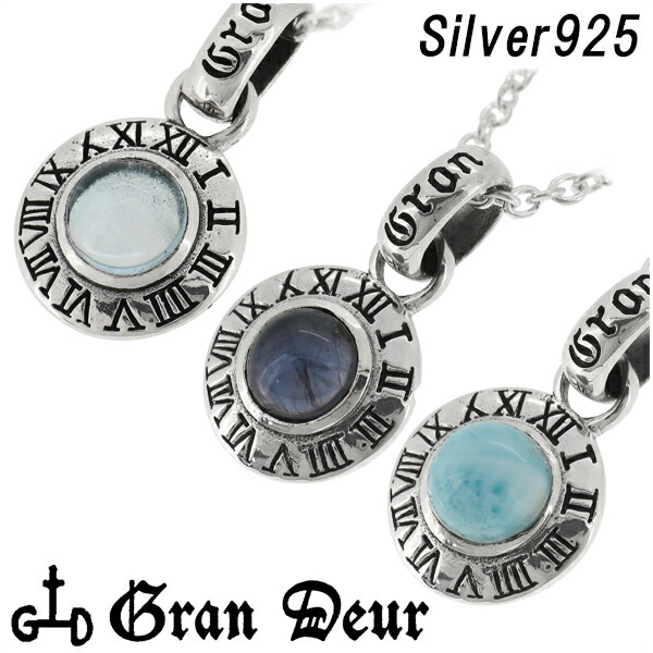 【GRAN DEUR】ブルートパーズコインシルバーネックレス(チェーン付)/メンズ ネックレス シルバー ブランド