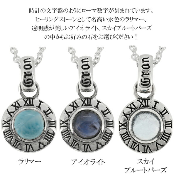 メンズ ネックレス ペンダント ラリマー アイオライト スカイブルートパーズ 時計 シルバー925【新宿 銀の蔵】