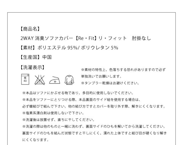 2WAY消臭カバー【Re・Fit】 リ・フィット 肘掛なしソファ用