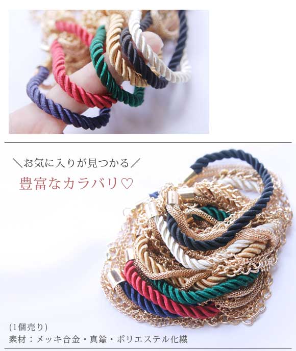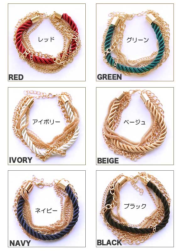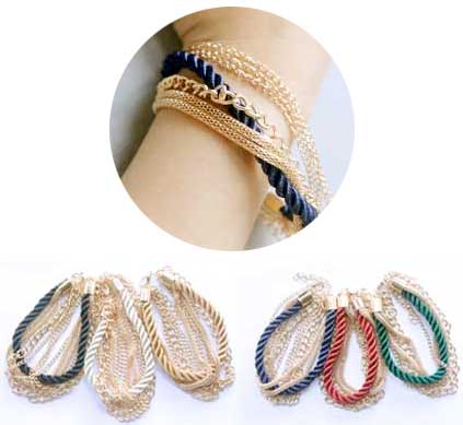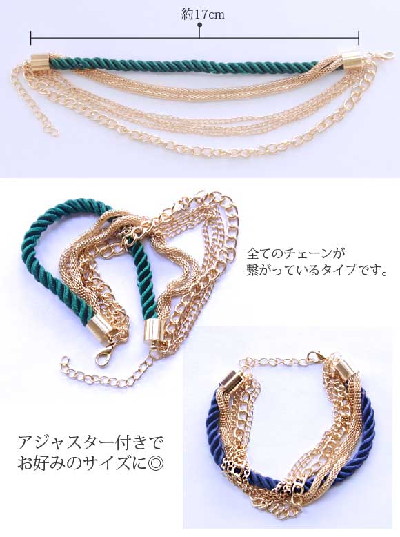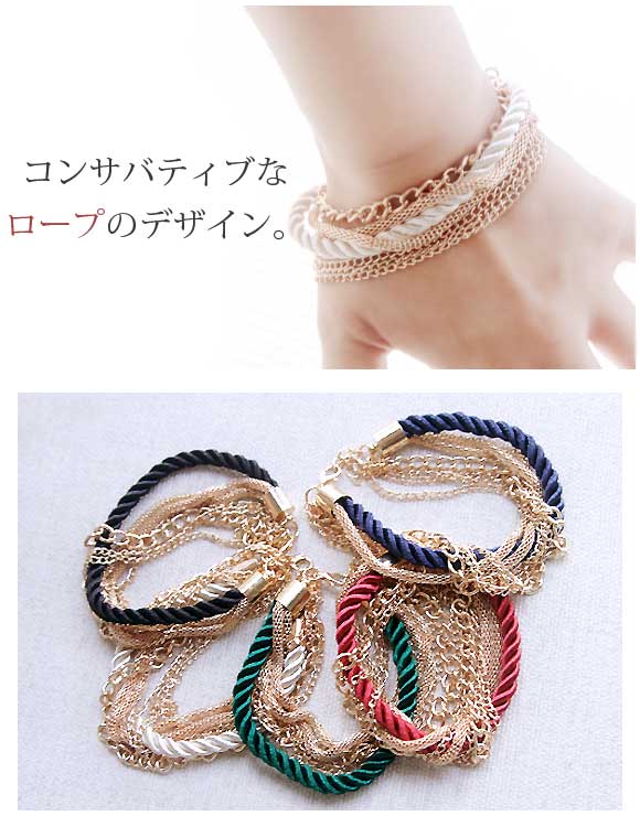 本日P2倍 ブレスレット 上品ゴールドチェーン&ロープのブレスレット 差し色ゴールド 多重チェーン レディース ブレス