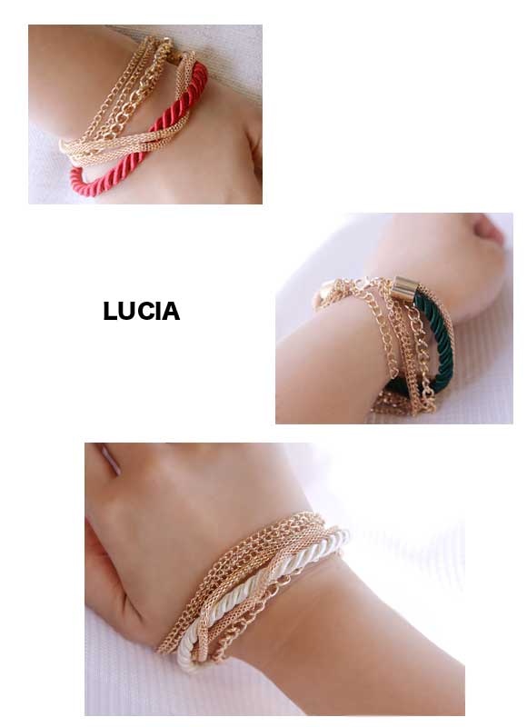 様々な細さ・形状のゴールドチェーンが幾重にも折り重なり、手首を華奢に見せてくれます♪