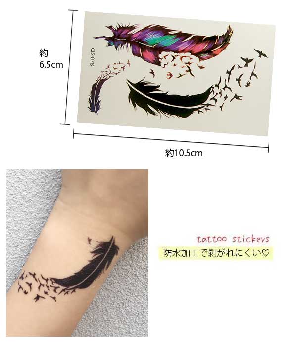 本日P2倍 タトゥーシール 羽根 メタモルフォーゼ 鮮やかカラー フェザー ワンポイント フェイクタトゥー タトゥーステッカー ハロウィン
