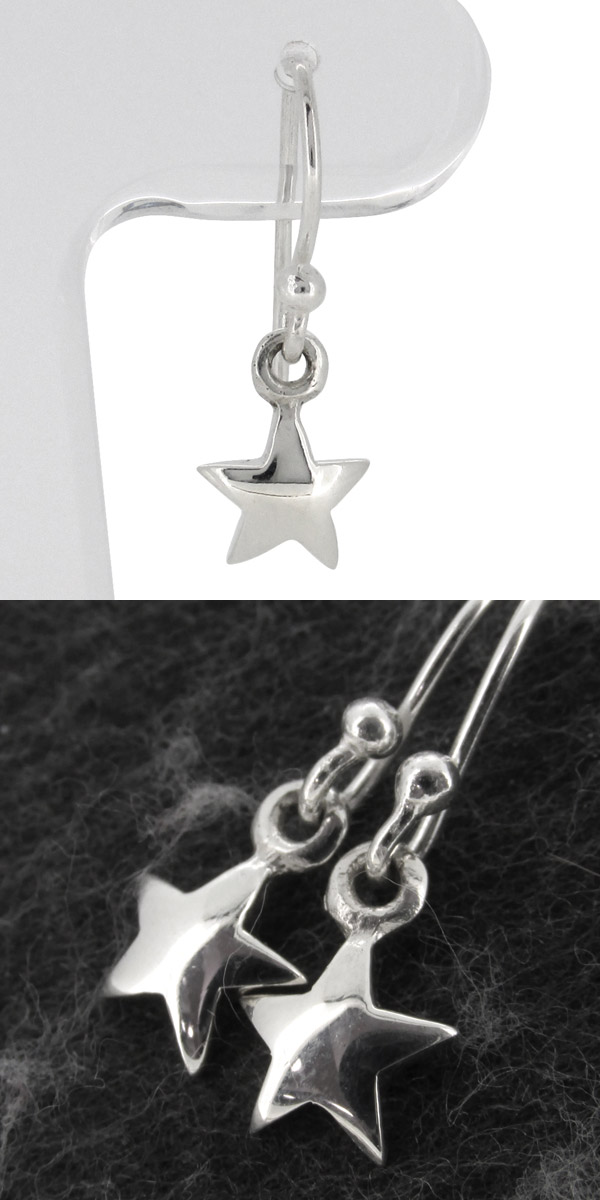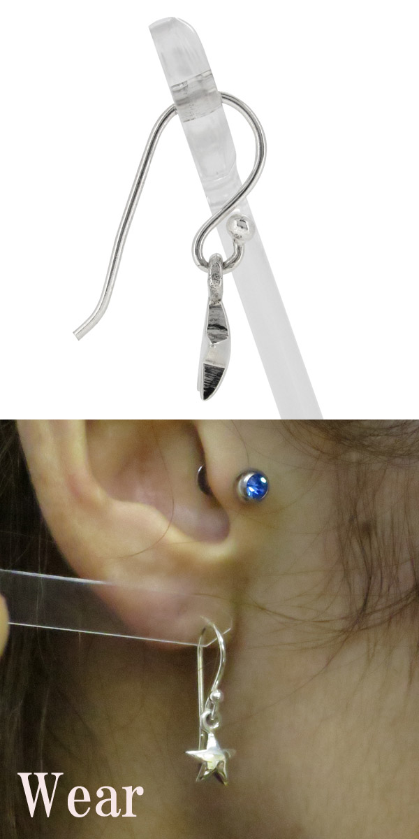 スターが耳の下でキラリ☆と輝くフックタイプのシルバーピアスです。