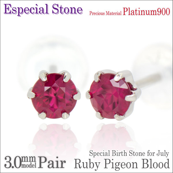 【送料無料】Pt900プラチナ/ルビー ピジョンブラッド/3mm/薄型6本爪/スタッドピアス/両耳ペア[宅配便]