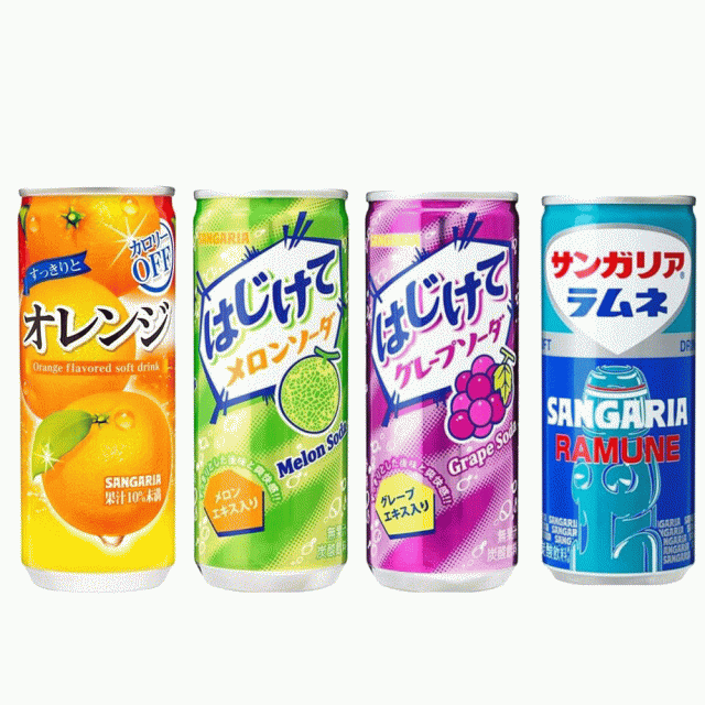 サンガリア 炭酸飲料 果汁飲料 4味 2ケース(60缶入) のご案内です。すっきりとオレンジ ラムネ はじけてグレープソーダ はじけてメロンソーダの4フレーバでお届けします。いろんな味が楽しめるセット。ポチッで玄関まで届きます。