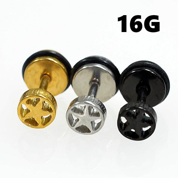 スター/星 フェイクプラグ/フェイクバーベル ストレートバーベル 【16G/1.2mm】