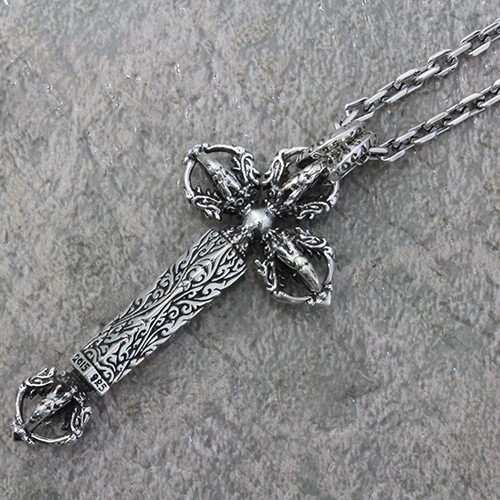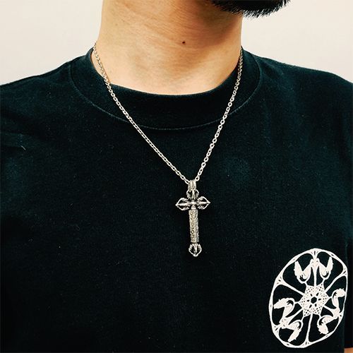 着用感、サイズ感、精密感、バランス感、ドージェの先端にドラゴンフェイスを組み込んだチベタンドラゴンをダブルにセットしたクロスペンダント。