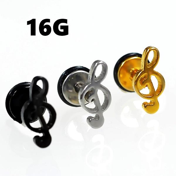 音符/ノート フェイクプラグ/フェイクバーベル ストレートバーベル 【16G/1.2mm】
