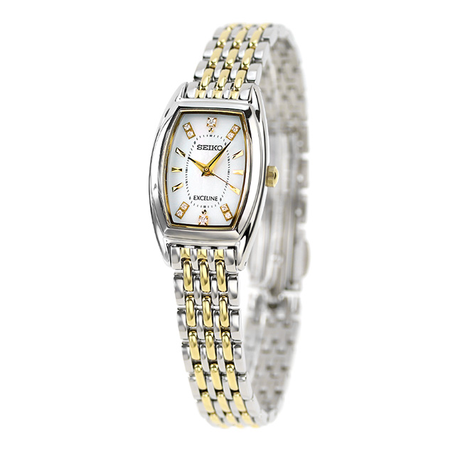 正規品 7年保証キャンペーン 送料無料 セイコー エクセリーヌ ソーラー トノー レディース 腕時計 SWCQ089 SEIKO DOLCE&EXCELINE アナログ ホワイトシェル ドルチェ&エクセリーヌは上品なドレスウォッチを展開するセイコーブランドです。スタイリッシュなデザインは、大切な人との時間を、自分らしさをスマートに演出します。 上品な美しさの白蝶貝文字盤のモデル。スタイリッシュなトノー型ケースに、ダイヤモンドが合計10個も付けられた、とても華やかなダイヤル。ダイヤモンドがないダイヤルもまた、見劣りしない美しさです。風防に施されたスーパークリアコーティングにより視認性が高く、ダイヤモンドもより美しく見せてくれます。発売日:16年7月発売