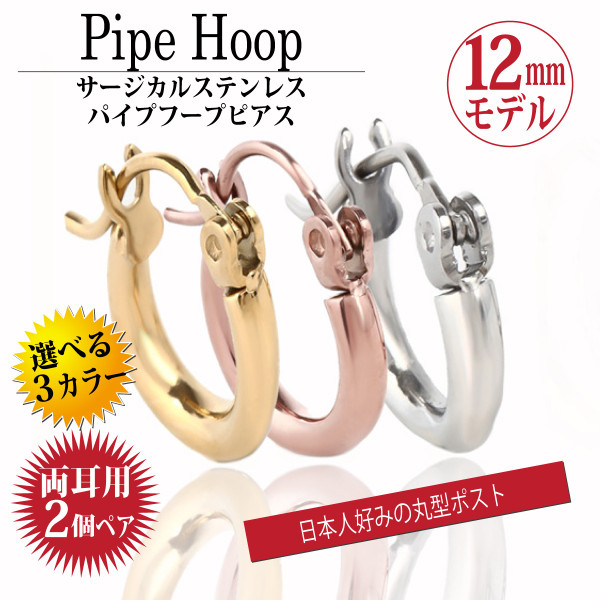 ピアス ステンレス フープパス 2φ×12mm 3カラー 両耳ペア サージカルステンレス