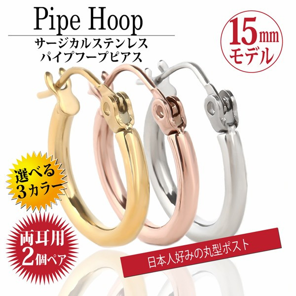 ピアス ステンレス フープピアス 2φ×15mm 3カラー 両耳ペア サージカルステンレス