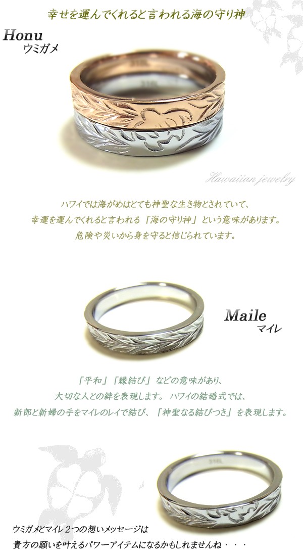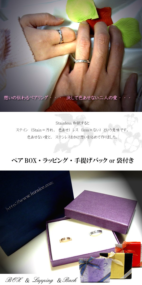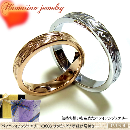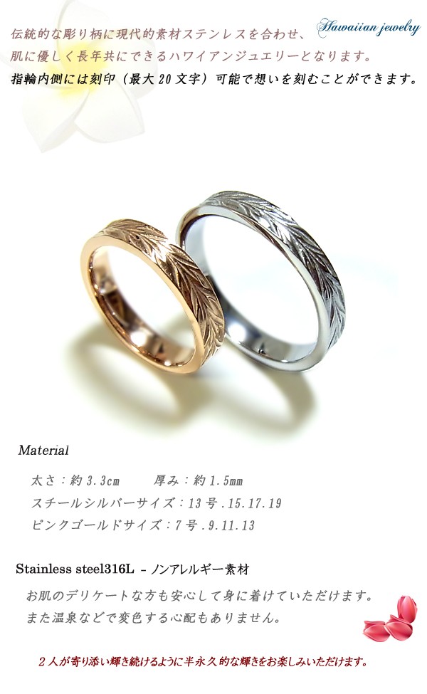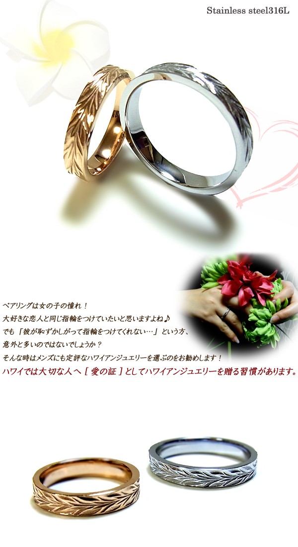 送料無料 刻印無料 ペアハワイアンジュエリー ペアリング 指輪 スチールシルバー ピンクゴールド ステンレス BOX付き ラッピング対応 アレルギー対応