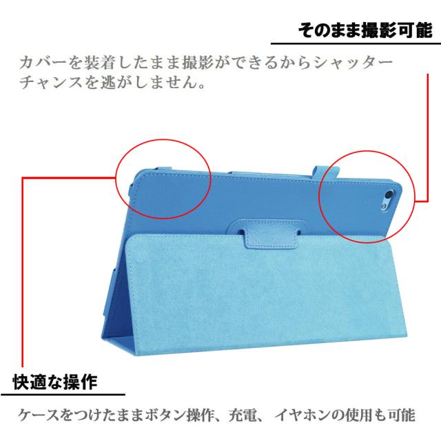 カバー外部は高級PUレザーで、内部材質はマイクロファイバーです。本体だけでなく液晶全面も保護する手帳タイプ。大切なタブレットを傷、汚れから、しっかり保護します。