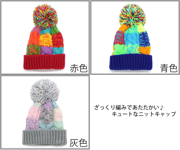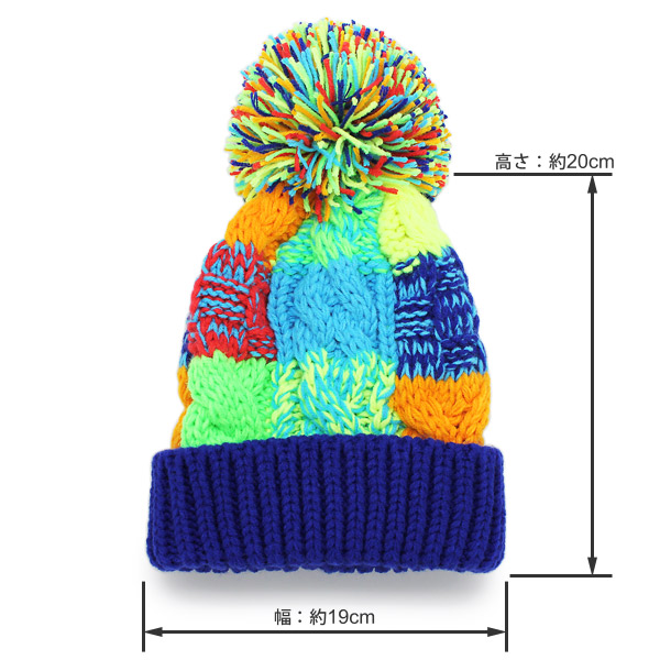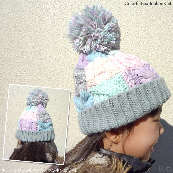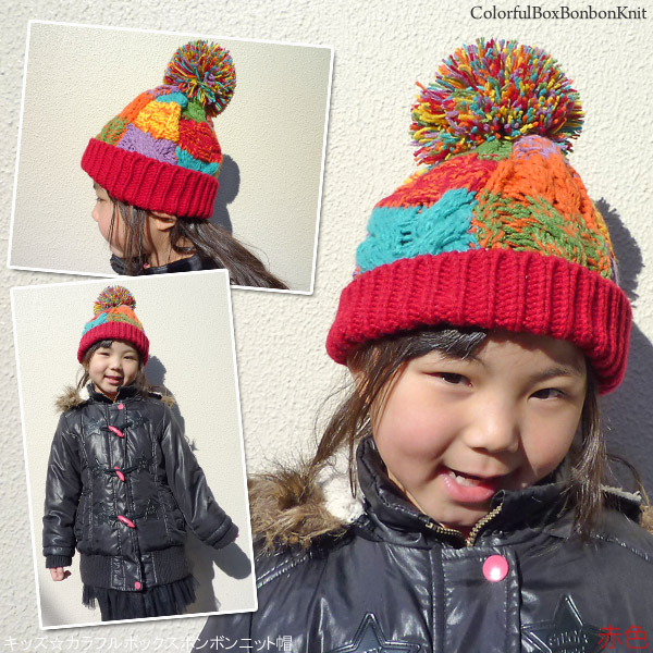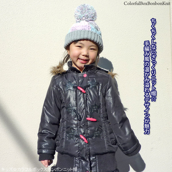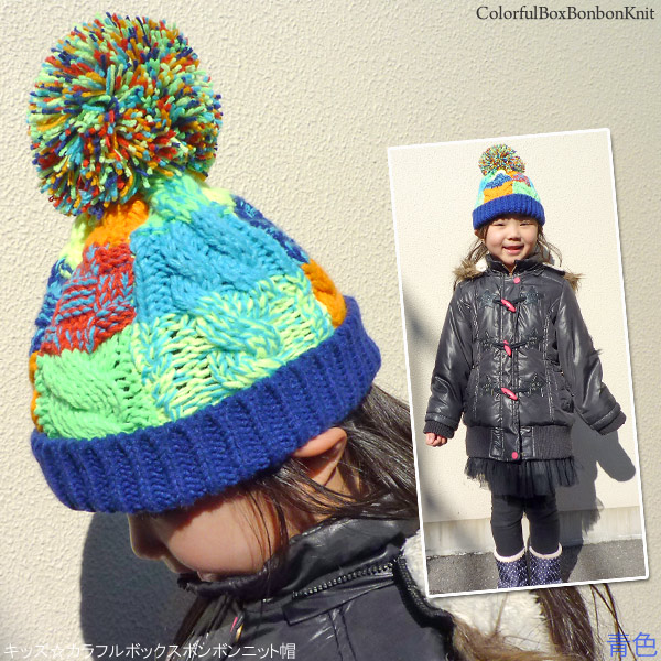 ニット帽 子供用 [メール便可] スキー スノボ 女の子 男の子 / キッズ カラフルボックスボンボンニット帽