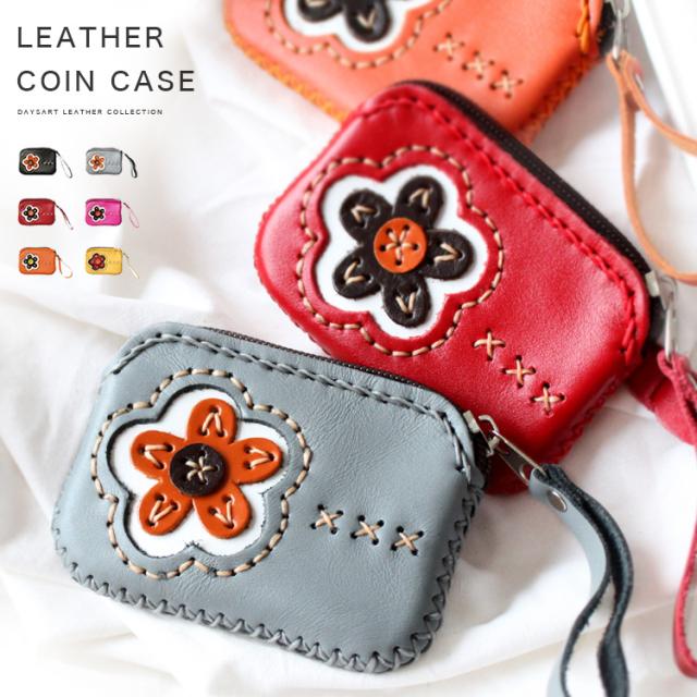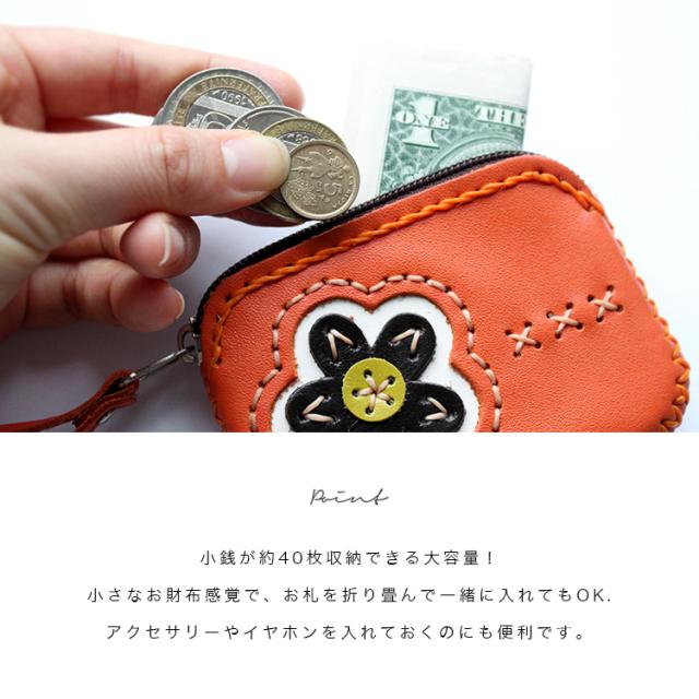 本革 フラワーデザイン レザーコインケース パッチワーク ワックスコード仕上げ ファスナータイプ コインケース 小銭入れ レザーネックレス メンズ 小銭入れ ヌメ革 牛革 バイカー 【ギフト】 cp029