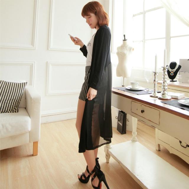 カーディガン ロングカーディガン ロングカーデ カーディガン アウター マキシ丈 マキシカーディガン 長袖 シフォン 無