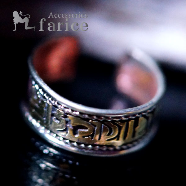 梵字&縄目2ライン彫り コッパーレッドブラウン&ブラスゴールドカラー アジアン・エスニックデザイン メンズ フリーサイズ リング