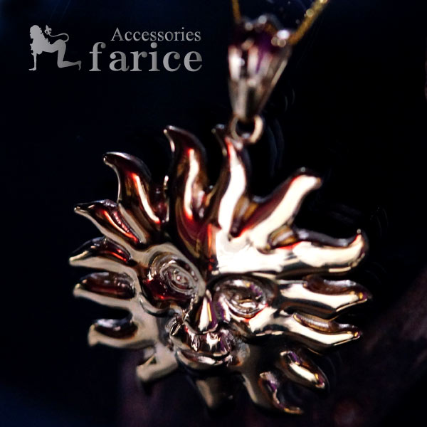 サン&フェイス サンシャイン(太陽の光)立体型 イエローゴールドカラー 艶出し光沢鏡面仕上げ メンズ ペンダント ネックレス