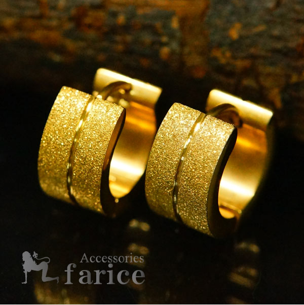 スターダスト 星屑 打ち出し仕上げ ステンレス ゴールドカラー メンズ ピアス ワンタッチ フープピアス【7mm幅】