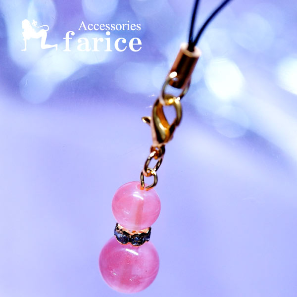 ★愛らしいピンクの色彩が人工石ながらもずば抜けた人気と知名度誇るパワーストーン【新しい恋を呼び込む石/チェリークォーツ】携帯・スマホストラップ!!