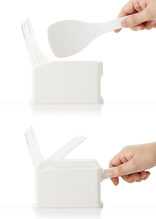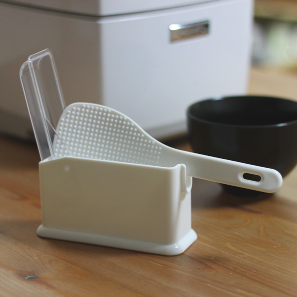 しゃもじを置くとカバーがしまる!便利なしゃもじスタンド