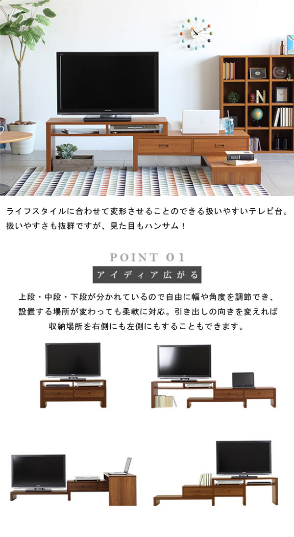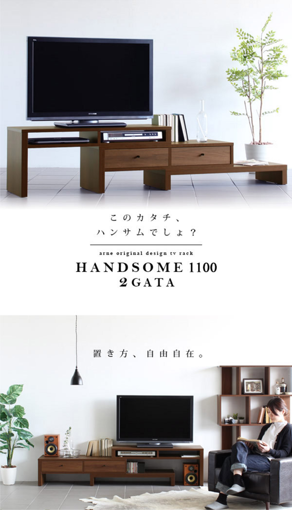 テレビ台 伸縮型 完成品 シンプル コンパクト テレビボード コーナー ローボード 木製 HANDSOME 1100 2GATA ☆