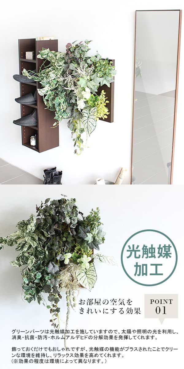光触媒観葉植物 おしゃれ 寄せ植え 壁掛け パネル 大型 玄関 観葉植物 光触媒 消臭 室内 フェイクグリーン Botanical a.class 02 》