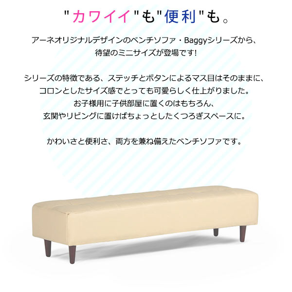 子供用 ソファー 2人 キッズソファ ベンチソファ 背もたれなし ミニソファ おしゃれ 日本製 arne mini Baggy 1200 合皮 □