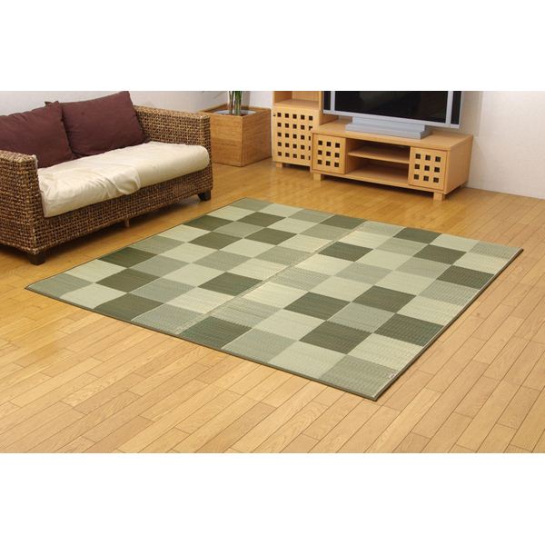 純国産/日本製 い草ラグカーペット 『Fブロック2』 グリーン 約191×191cm(裏:ウレタン) 【北海道・沖縄・離島配送不可】