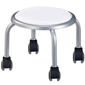 ●サイズ/座面:直径320mm、高さ:255mm ●重量/2kg ●部材/座張地:塩化ビニル、脚:スチール(粉体塗装)、キャスター:ウレタン