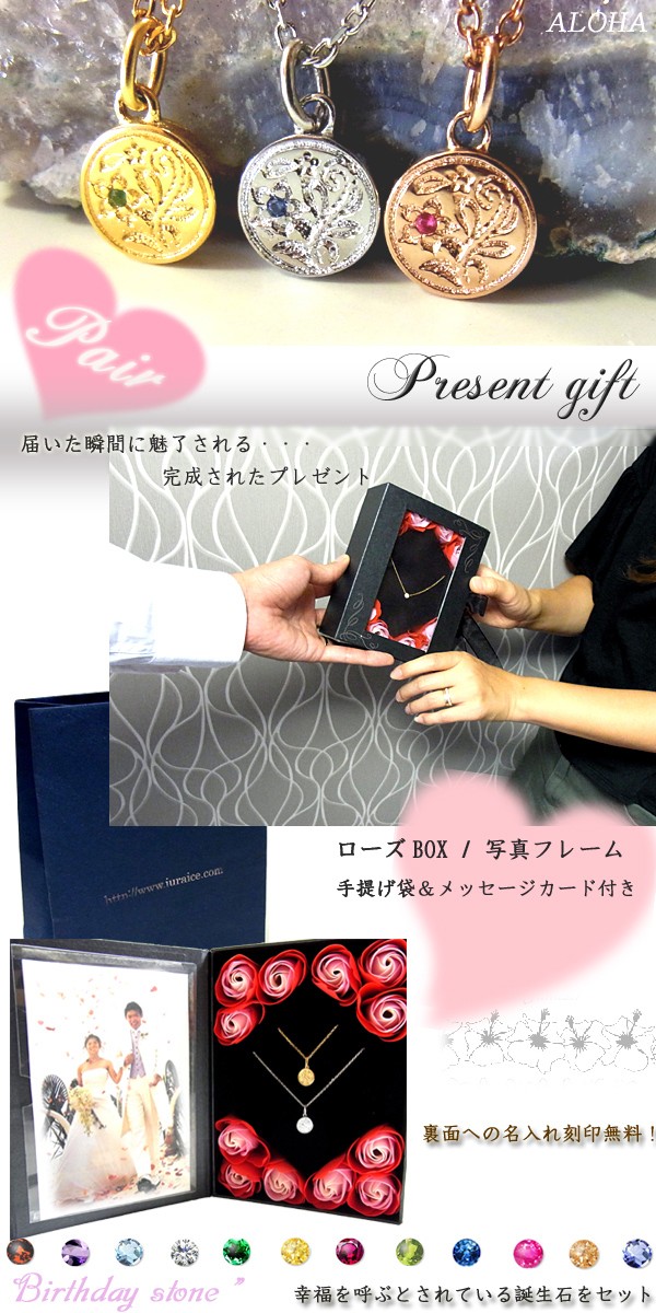 送料無料 刻印無料 ペアハワイアンジュエリー ペアネックレス ペアペンダント 誕生石 入浴剤 写真フレーム カップル ラッピング対応 アレルギー対応