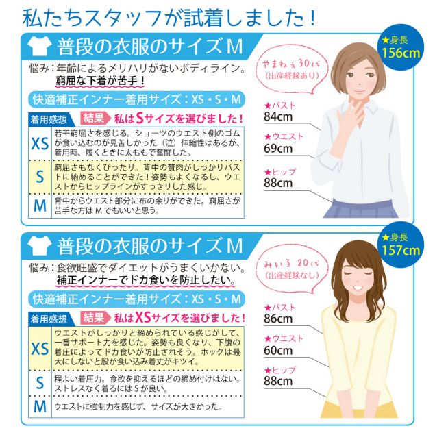 ・お腹のポッコリでお悩みの方は普段のサイズでのご利用をおすすめ致します。